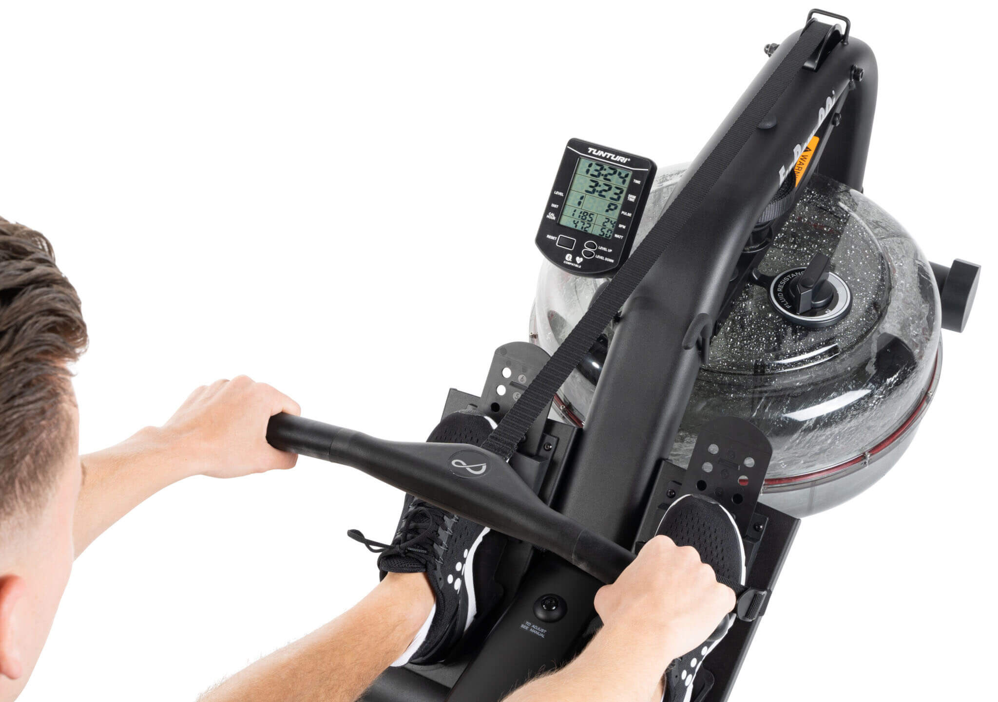 Tunturi FitRow 90i разработан с использованием запатентованной технологии двойного водного резервуара Fluid Twin Tank, что создает ощущение реальной гребли по воде. Система позволяет легко регулировать сопротивление с помощью поворотного диска, предоставляя вам полный контроль над тренировкой и возможность использовать тренажер всей семьей.