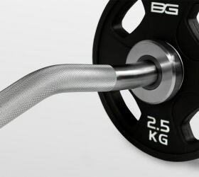 Изогнутый EZ-образный гриф отлично подойдет для упражнений на бицепс и трицепс. В отличие от прямого грифа, расположение рук на кривом грифе анатомически более правильное, и запястья не выламывает при выполнении упражнений для рук. Максимальная нагрузка 140 кг. Хромированная сталь, нескользящие насечки для прочного хвата. Диаметр центральной части грифа - 28 мм. Замки входят в комплект.