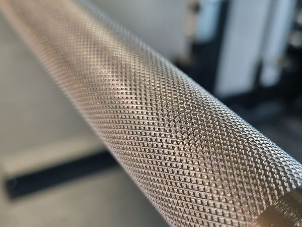 Рифление Volcano нанесено на участки, ограниченные кольцами втулок, предназначенные для среднего и сильного хвата — особенно полезно при работе с тяжелыми весами. Оно прерывается в зонах для жима (910 мм), пауэрлифтинга (810 мм) и в центральной части, чтобы снизить трение о тело спортсмена и обеспечить комфорт при выполнении упражнений.
