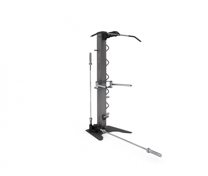 Компактный вариант для выполнения различных упражнений. Т-образная планка позволяет выполнять упражнения для ягодичной мышцы, мышц спины и плеча. Интегрированная наклонная планка позволяет эффективно тренировать грудь и трицепс. Подкладка для подбородка может использоваться для эффективной тренировки спины, а дополнительные держатели обеспечивают приспособления для тренировок с использованием ремней сопротивления.