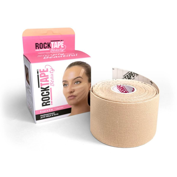 Кинезиотейп для лица ROCKTAPE Beauty Gentle Face tape, 5 см х 5 м, бежевый