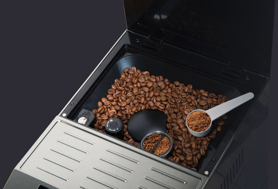 Помимо зерен в кофемашине можно использовать и молотый кофе. С помощью мерной ложечки засыпьте молотый кофе в специальный отсек. Нажмите на выбранную иконку и кофемашина приготовит эспрессо, американо, капучино или латте.