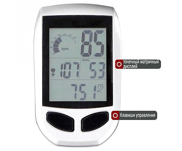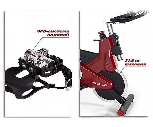 Тренажер можно оснащать классическими педалями (с клипсой), а можно воспользоваться SPD педалями (без клипс). Тренажер с прочным хромированным маховиком (масса которого 21,8 кг) и магнитной тормозной системой имеет тихий и плавный ход, а также отличается эффективным торможением. С помощью интегрированной консоли пользователь будет всегда в курсе количества вращений педалей, отображается время и количество потерянных Ккал, а также спортсмен будет в курсе пройденной дистанции и затраченного времени. Данная конструкция спортивного оборудования прекрасно совмещается с беспроводным поясом, который контролирует частоту сердечных сокращений.