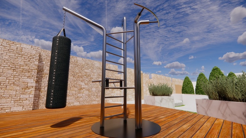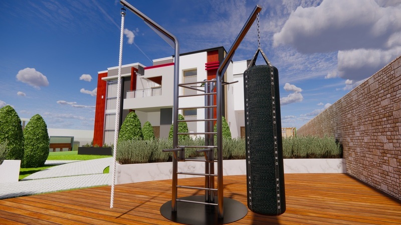 В комплектацию Open Air Trio входит брусья, шведская стенка и турник. Дополнительно можно заказать канат, мешок для бокса, скамью для жима, штангу с упорами. Перечисленных снарядов хватит, чтобы полностью закрыть потребность семьи в фитнес-тренировках на открытом пространстве.