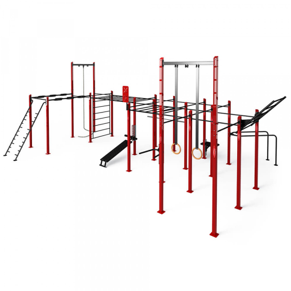 Самая оснащенная конструкция среди DFC OUTDOOR, поскольку она включает в себя все аксессуары DFC Outdoor для функциональных и гимнастических тренировок и кросс-тренингов. На противоположных краях есть две установки для лазания с гимнастическим кольцом и/или канатом для каждой. Тридцать четыре пользователя любого уровня могут тренироваться одновременно и практиковать все типы тренировок с собственным весом. Также возможны групповые тренировки по разным дисциплинам.