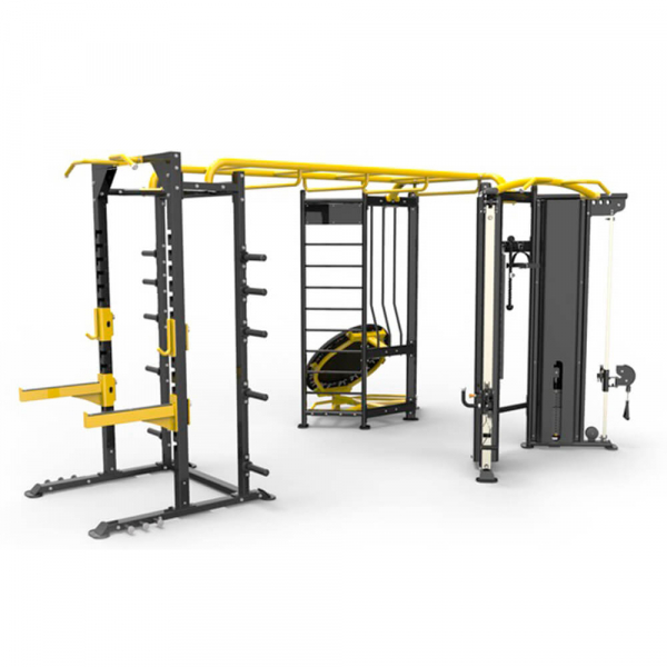 Комплекс из 3х модулей в форме буквы "T", состоит из: зоны реакции, зоны силовой нагрузки (силовой рамы) и двойной регулируемой тяги, соединенных между собой посредством «рукохода» и специальной перекладины, включающий плио платформу, опору для отжиманий (брусья) и шарнирный крепеж для грифа.