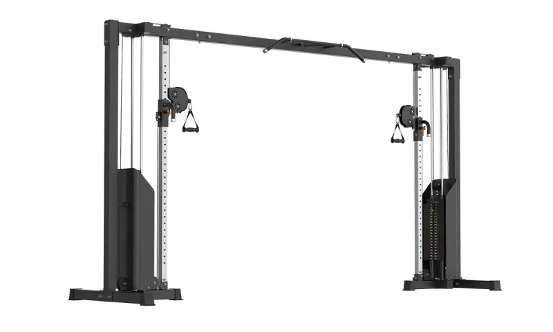 Этот кроссовер принадлежит к образцам профессионального класса и рассчитан на коммерческое использование. Функциональные тренировки, совершаемые с помощью этого снаряда, обеспечивают результативную проработку различных мышечных групп. Двойные тяговые стойки дают возможность выполнять упражнения как обоими руками, так и одной, что открывает перспективу прорабатывать важные группы мускулатуры. Вращающиеся рукоятки предоставляют непринужденные и естественные перемещения. На верхнем перекладине имеется турник, рукоятки которого дают возможность делать подтягивания Широким, средним и узким хватом, что позволяет нагружать разные группы мышц, направляя на них усилия. Конструкция кроссовера включает 2 грузовых стека. Комфортный выбор нагрузки происходит при помощи штифтов.