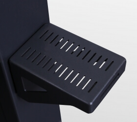 Кардио тренажер обладает рядом дополнительных и очень важных преимуществ. В первую очередь, это наличие специальных педалей для облегчения подъема на лестницу и спуска с нее. К особенностям следует отнести и клавиши быстрого регулирования скорости на поручнях. В целях безопасности оборудование оснащено боковыми поручнями и датчиком движения – лестница автоматически выключится без нагрузки. Для бутылки с водой предусмотрен держатель, а хранить личные вещи можно в большом отсеке для аксессуаров.