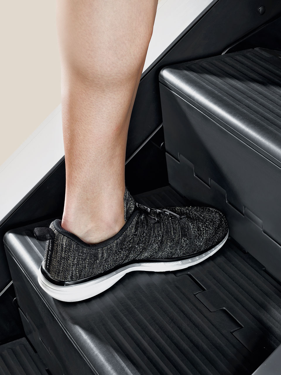 После завершения тренировки Courtesy Step™ автоматически меняет положение платформы, устанавливая её на высоте всего 26,5 см от пола. Artis Climb не только облегчает подъем, но и автоматически активирует интерфейс при обнаружении вашего встать на ступени, подстраиваясь под ваши тренировочные настройки.