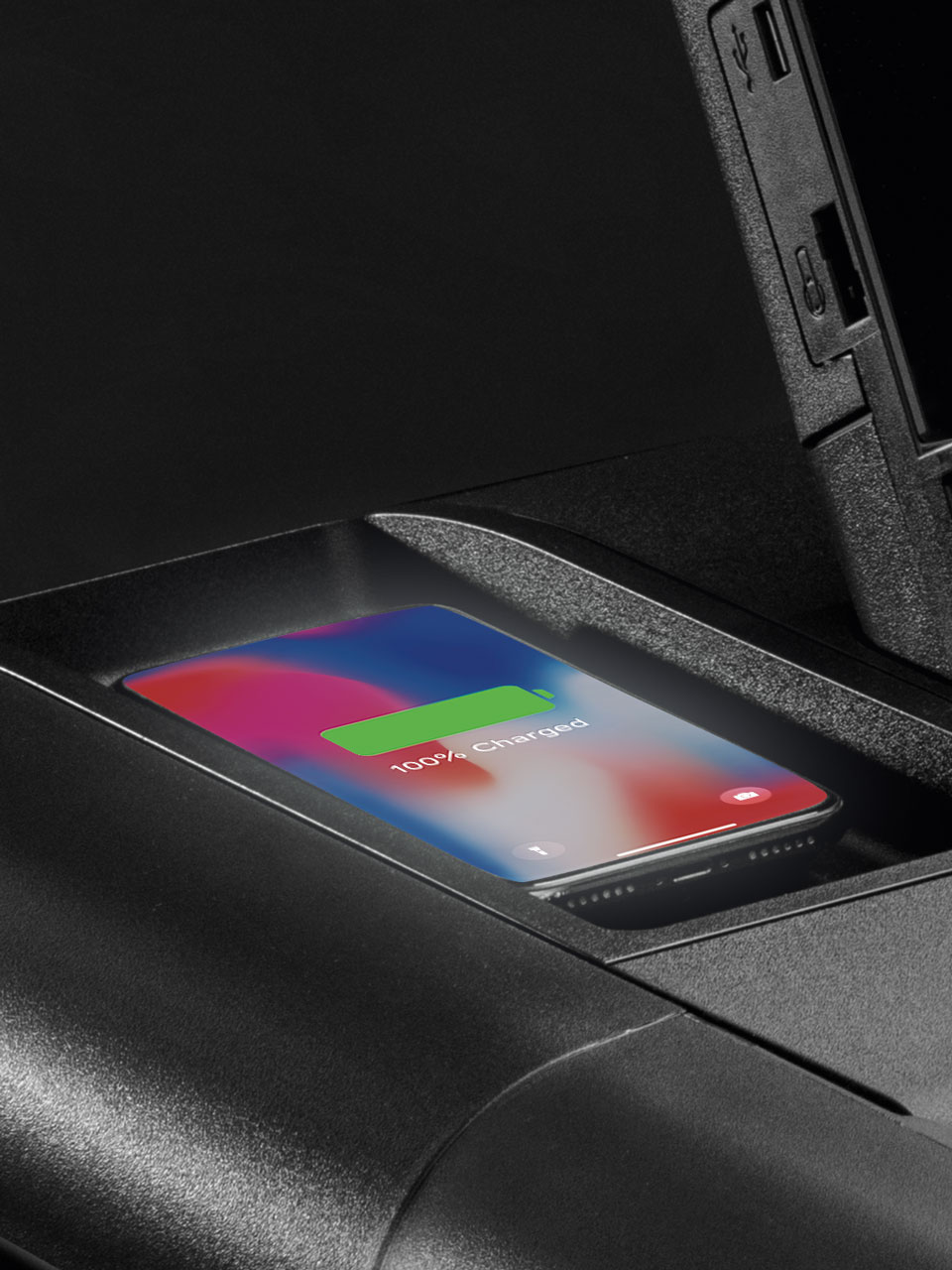 Заботьтесь о своем телефоне после тренировки: встроенное беспроводное зарядное устройство позволяет оставить гаджет в специальном кармане держателя и заряжать его во время занятий. Больше никаких проблем с разряженным устройством и прерываниями в социальной жизни.