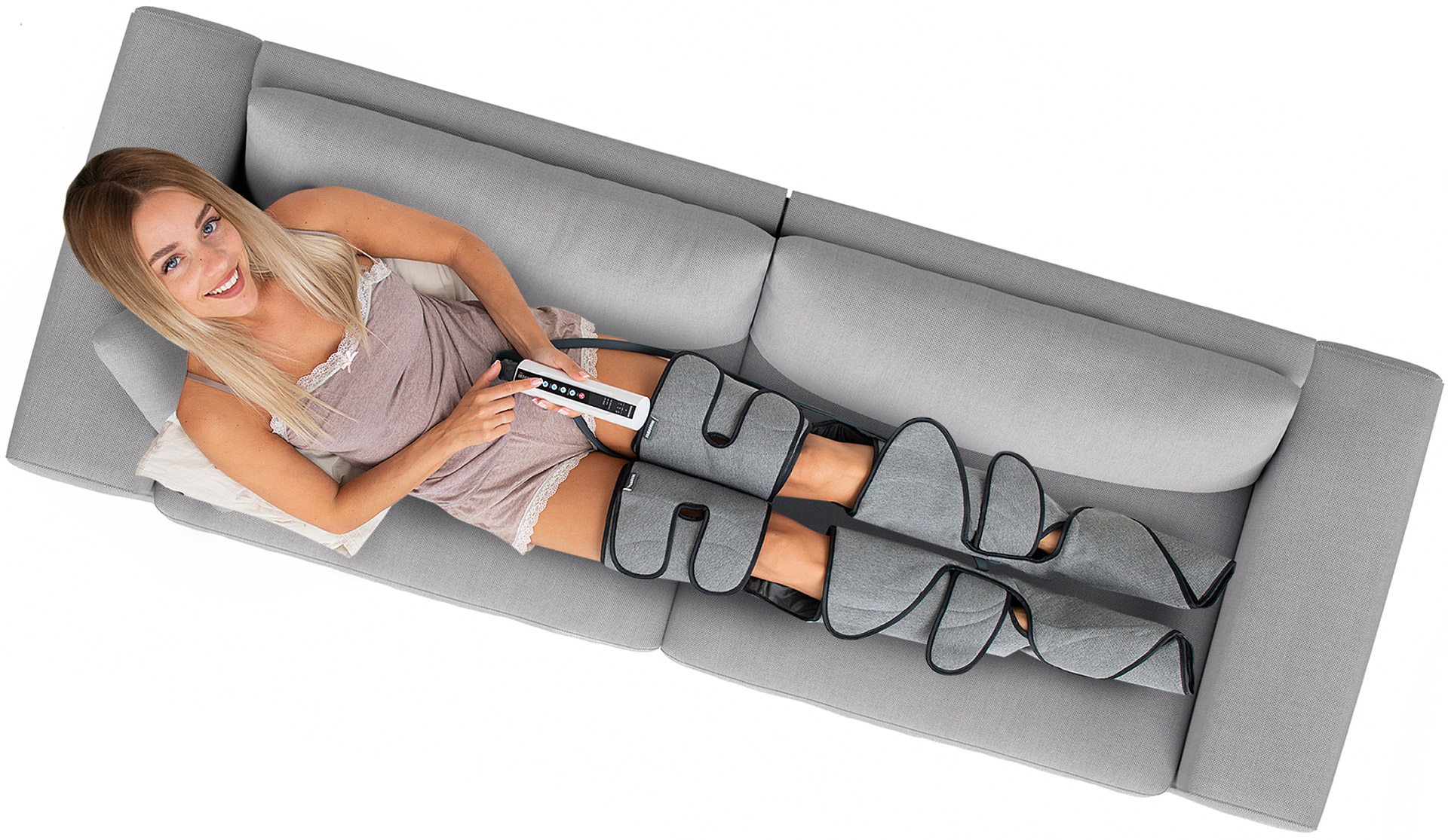 В результате комбинированного давления на голени, стопы и бедра исчезают подкожные жировые отложения на ногах, снимается усталость, стенки сосудов приходят в тонус, что предотвращает варикозное расширение вен.