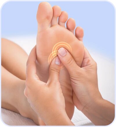 Успокаивающий режим. Точечный скребковый массаж стоп с постоянной скоростью воздействия. Расслабляющий аэромассаж всей части стопы.