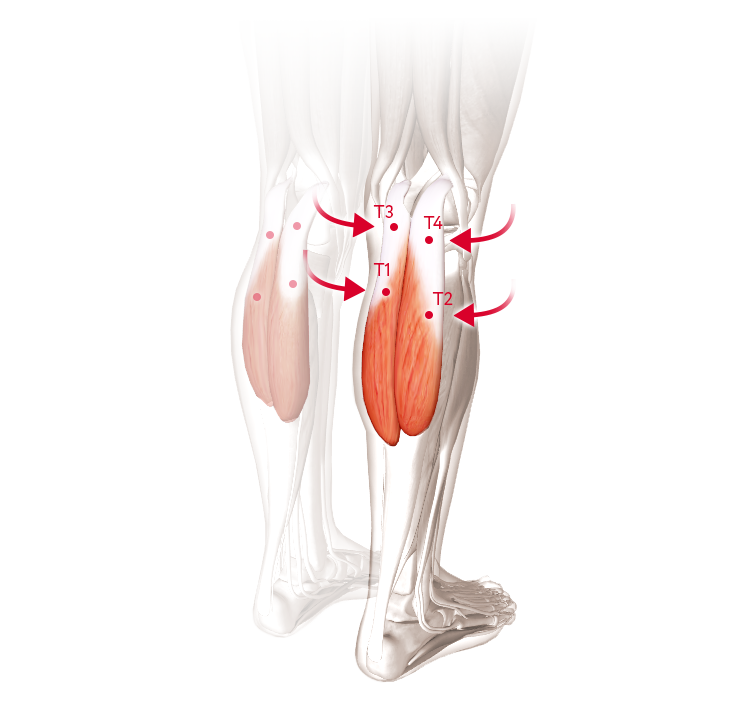 Детальная проработка болевых участков TT1, TT2, TT3, TT4 и комплексный массаж всей поверхности ноги значительно уменьшают спазм, способствуют расслаблению и снятию избыточного напряжения в уплотненной области.