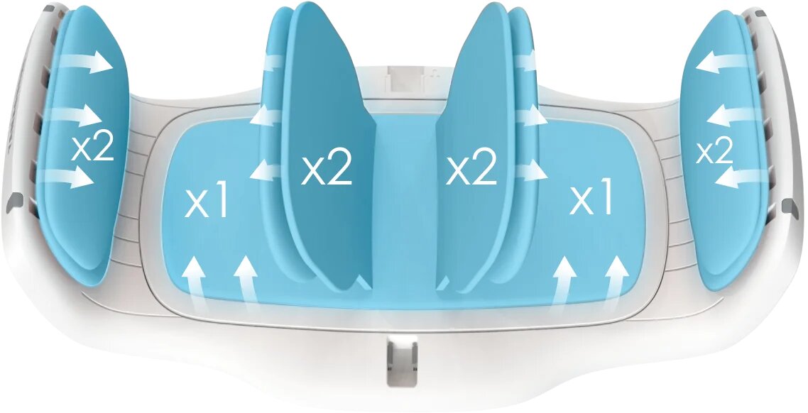 10 специальных аэроподушек с прогревом обеспечивают интенсивный воздушно-компрессионный массаж спины, бедер, ягодиц, стоп и рук, чтобы максимально быстро снять мышечное напряжение, спазмы и улучшить лимфодренаж.