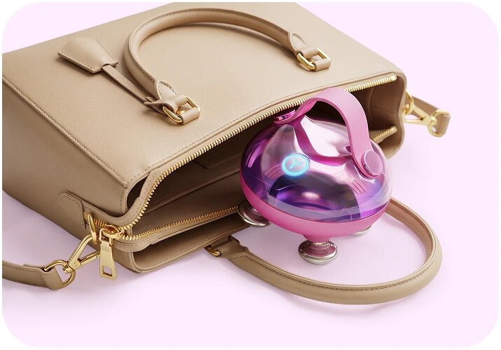 Массажер настолько компактен, что исчезает в самой маленькой сумочке. Воспользуйтесь им для моментального расслабления дома, тонизирующей паузы в офисе или спа-процедуры в пути.