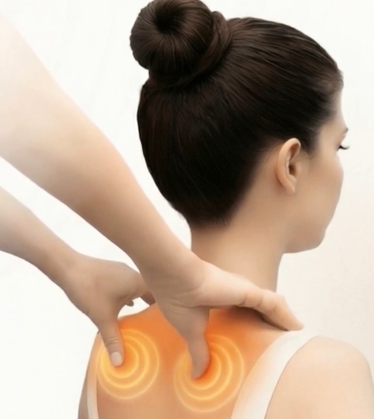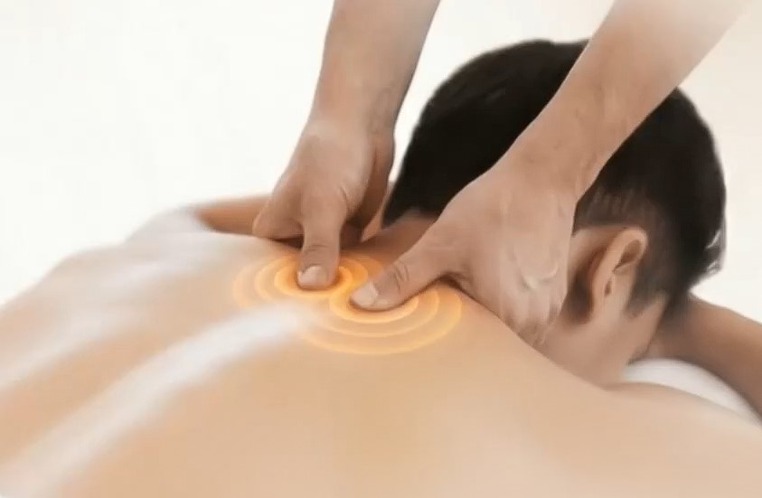 Техника массажа осуществляет точечное давление на акупунктурные точки, снимая мышечную скованность и спазмы в области головы, шеи и плеч.
