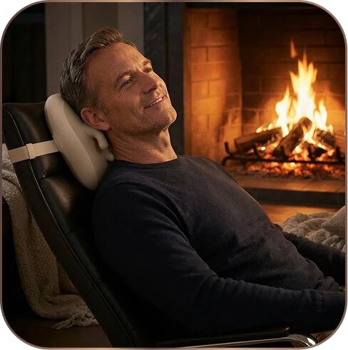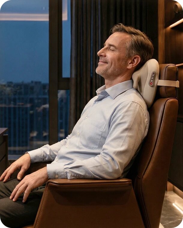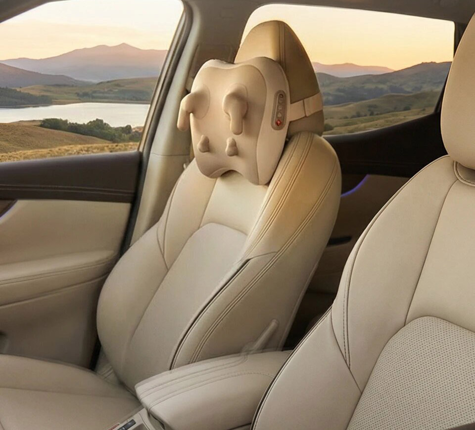 Устройство крепится с помощью ремня прямо в салоне транспортного средства, расслабляя мышцы спины и шеи, улучшая кровообращение и снижая усталость от дороги.