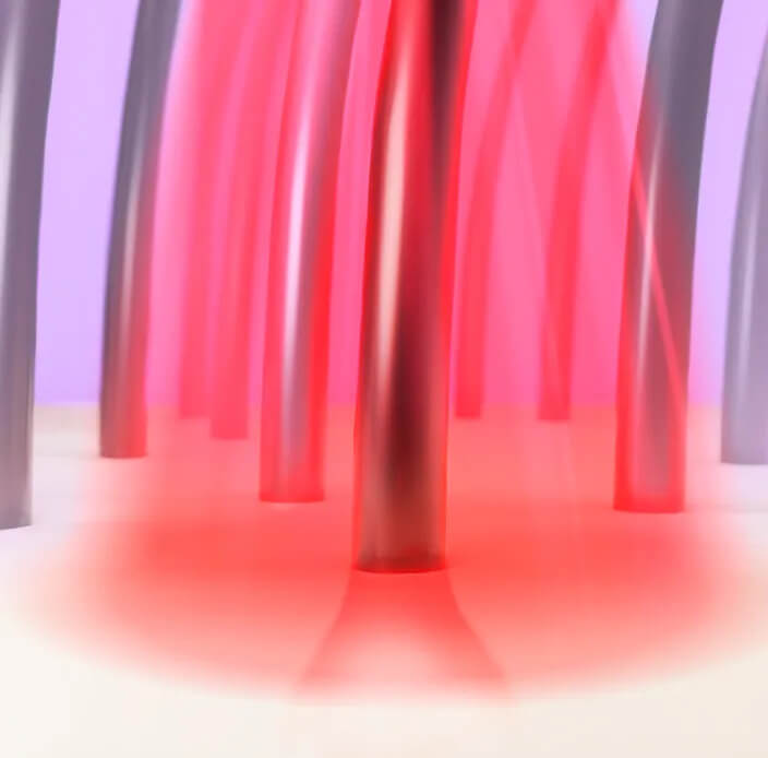 Красный свет определённой длины волны помогает в восстановлении структуры и нормального роста волос с целью профилактики облысения.
