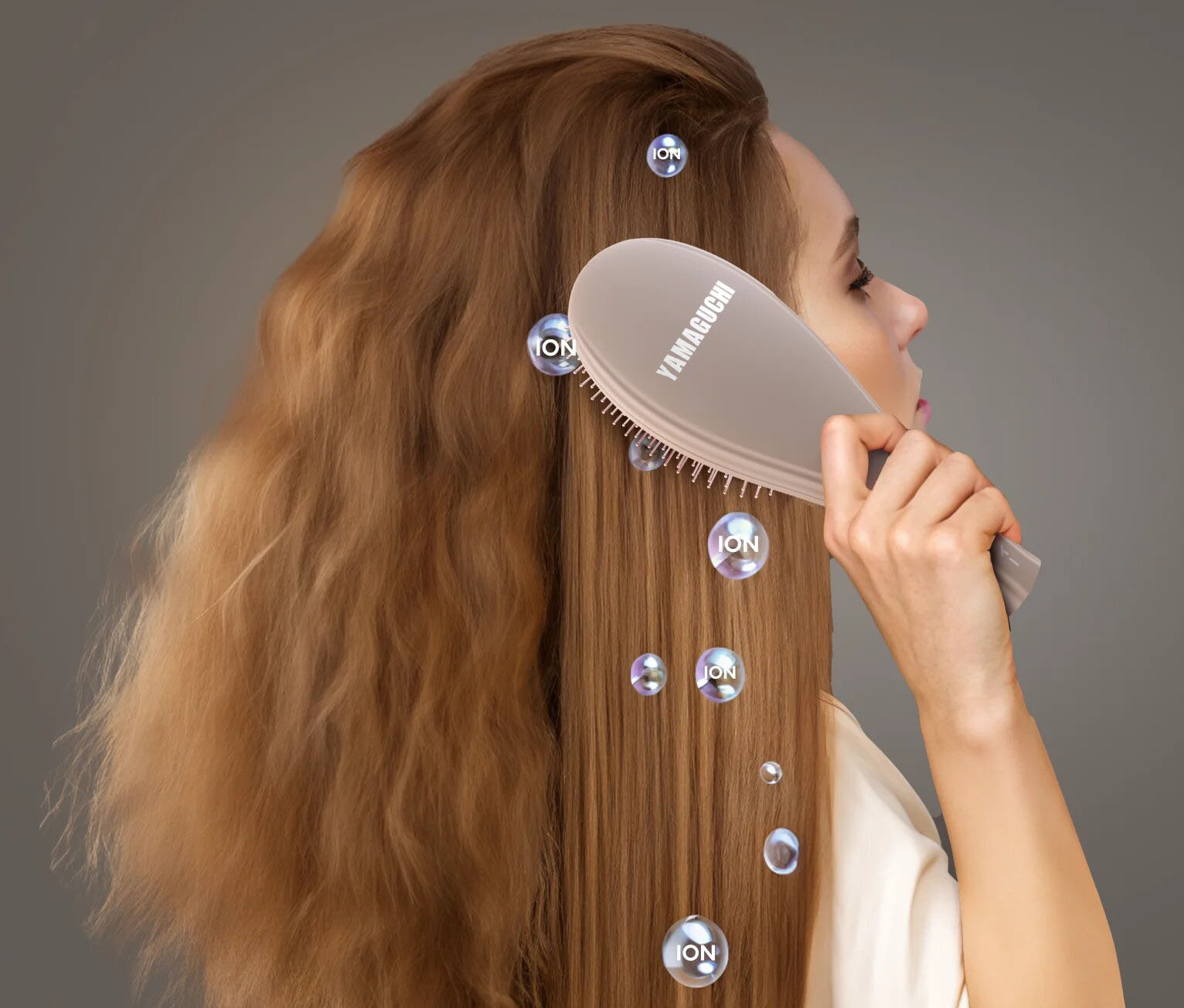 Массажная расческа с миостимуляцией YAMAGUCHI EMS Hair Brush Сappuccino