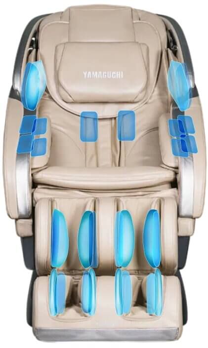 40 массажных подушек массажного кресла Yamaguchi Mercury осуществляют скручивающий массаж с элементами мануальной терапии.
