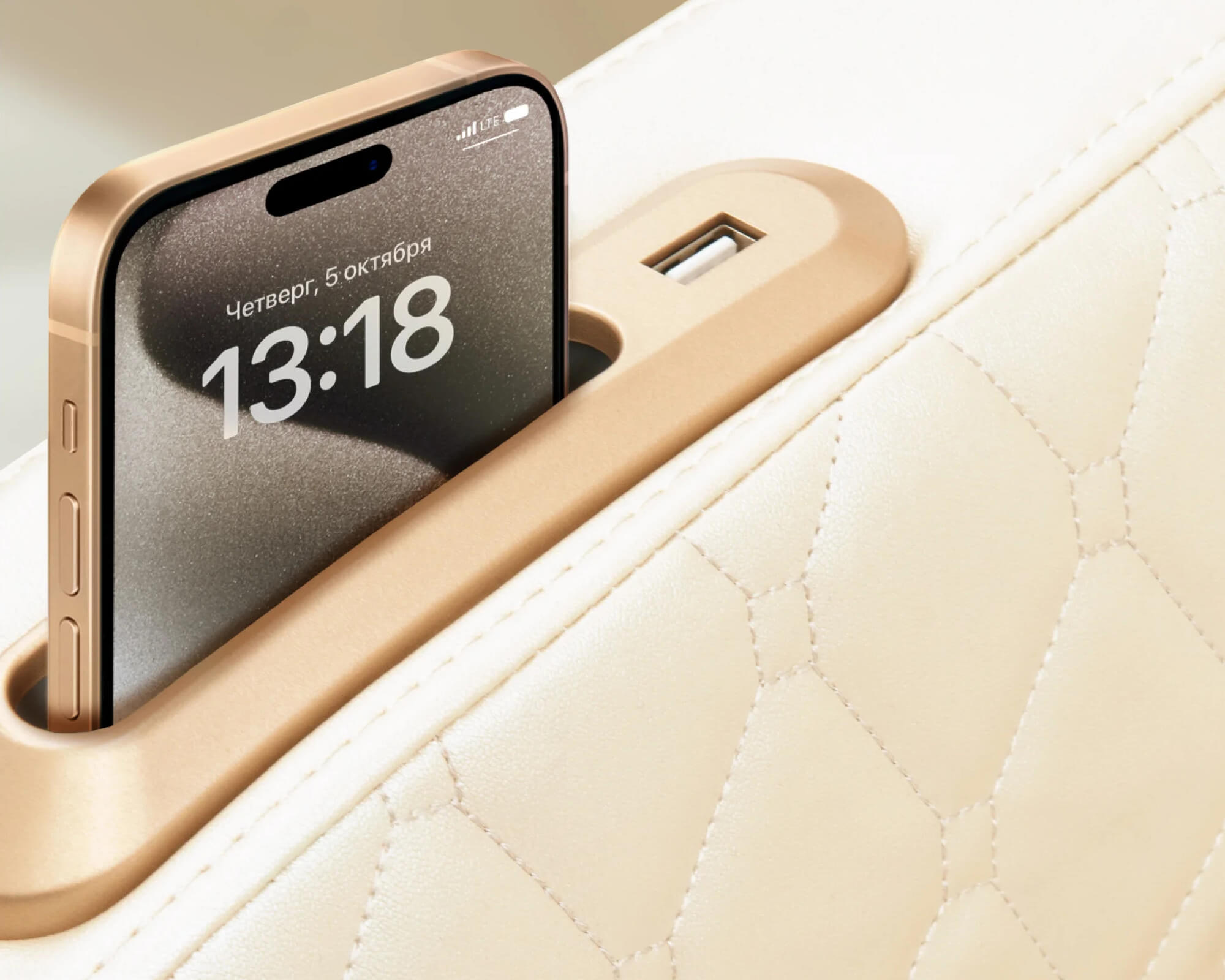 Дополнительное отделение для смартфона и USB-разъем для зарядки устройств расположенный на правом подлокотнике, позволяет заряжать другие устройства.