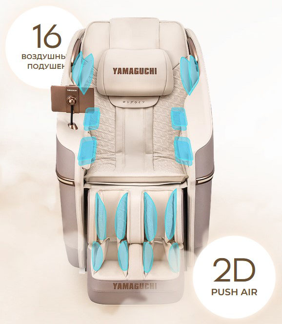16 воздушных подушек 2D Push Air, используя техники массажа, имитирующие постукивания, захватывания и надавливания, обеспечивают интенсивный аэрокомпрессионный массаж всего тела, чтобы снять мышечное напряжение и улучшить лимфодренаж.