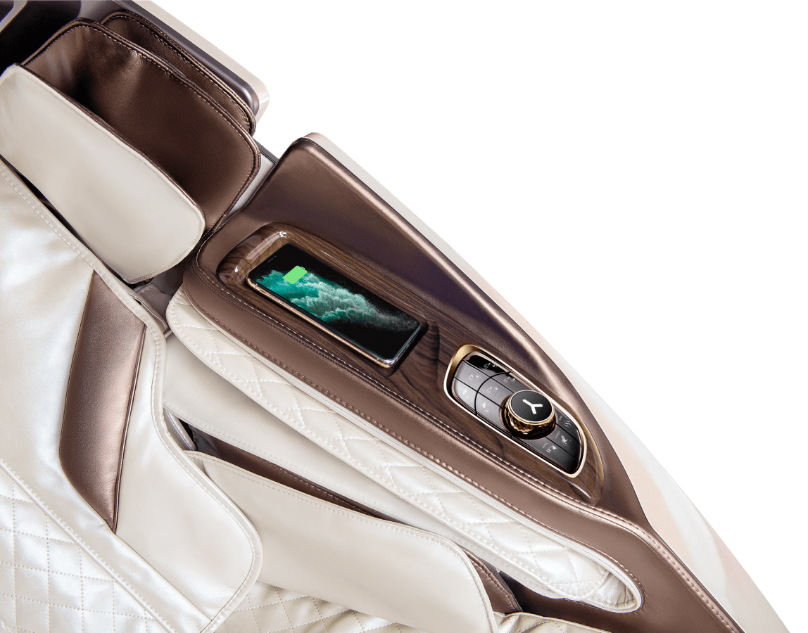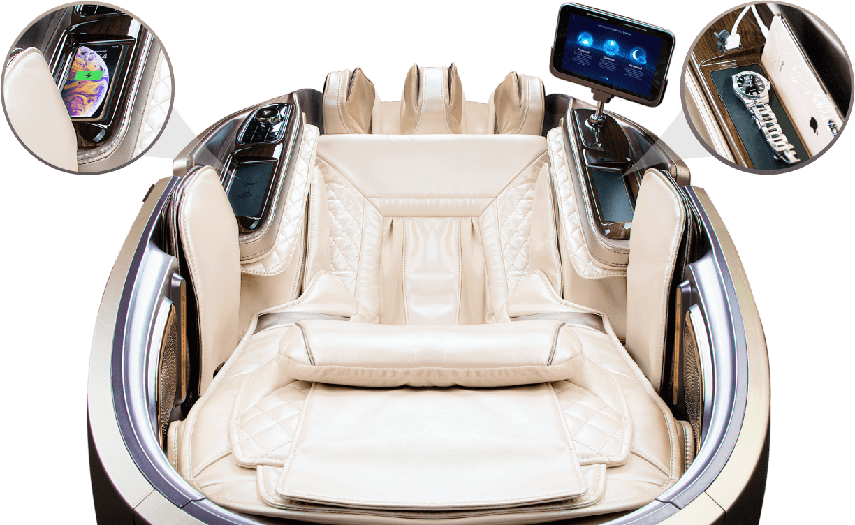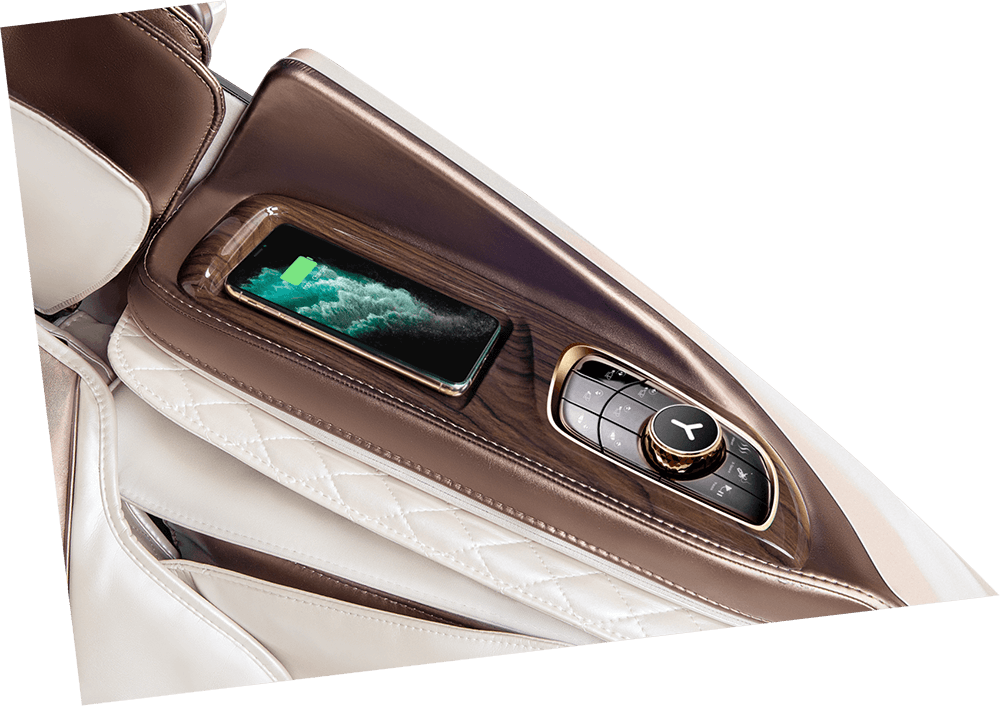 В дополнение ко всем неоспоримым достоинствам нового массажного кресла можно отнести беспроводную технологию зарядки смартфонов, которая призвана избавить от хлопот с неудобными разъемами.