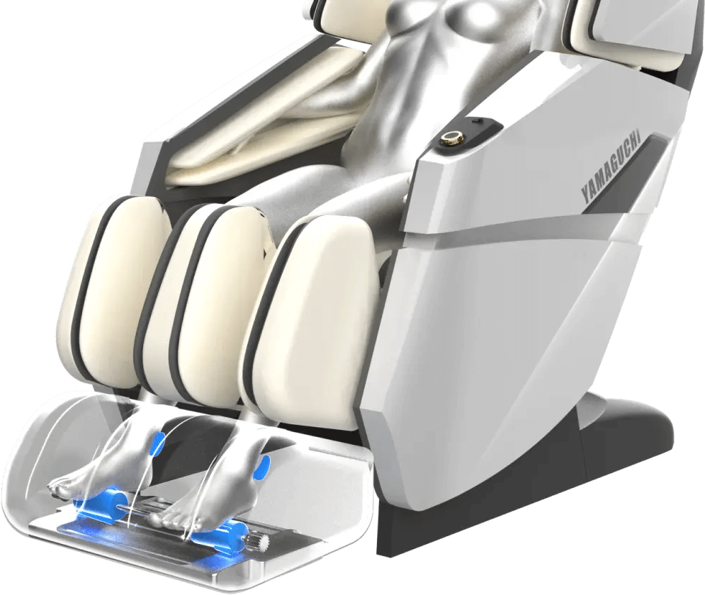 Благодаря уникальной запатентованной программе SmartSlide, Yamaguchi Xr для бесперебойной работы требуется установка лишь в 10 сантиметрах от стены! Перед началом каждого сеанса кресло автоматически выдвигается вперед на 28 сантиметров и меняет угол наклона спинки и подставки для ног.