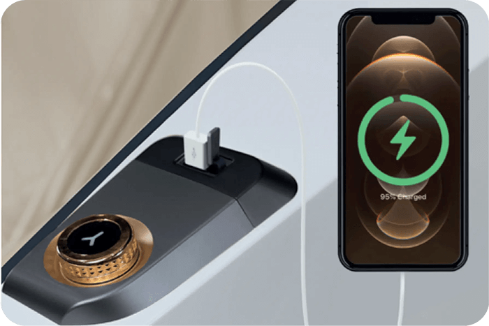 Вдумчиво разработанный дополнительный USB-порт, расположенный на левом подлокотнике кресла, предоставляет пользователю возможность зарядить свое электронное устройство, не отрываясь от процедуры массажа.