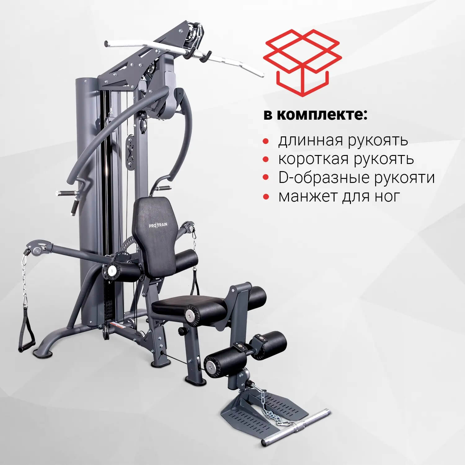 Многофункциональная станция Protrain PR-HG8000 — многофункциональный силовой тренажер, способный заменить тренажерный зал. Компактная станция позволяет выполнять десятки упражнений на все группы мышц и устроить полноценную силовую тренировку.