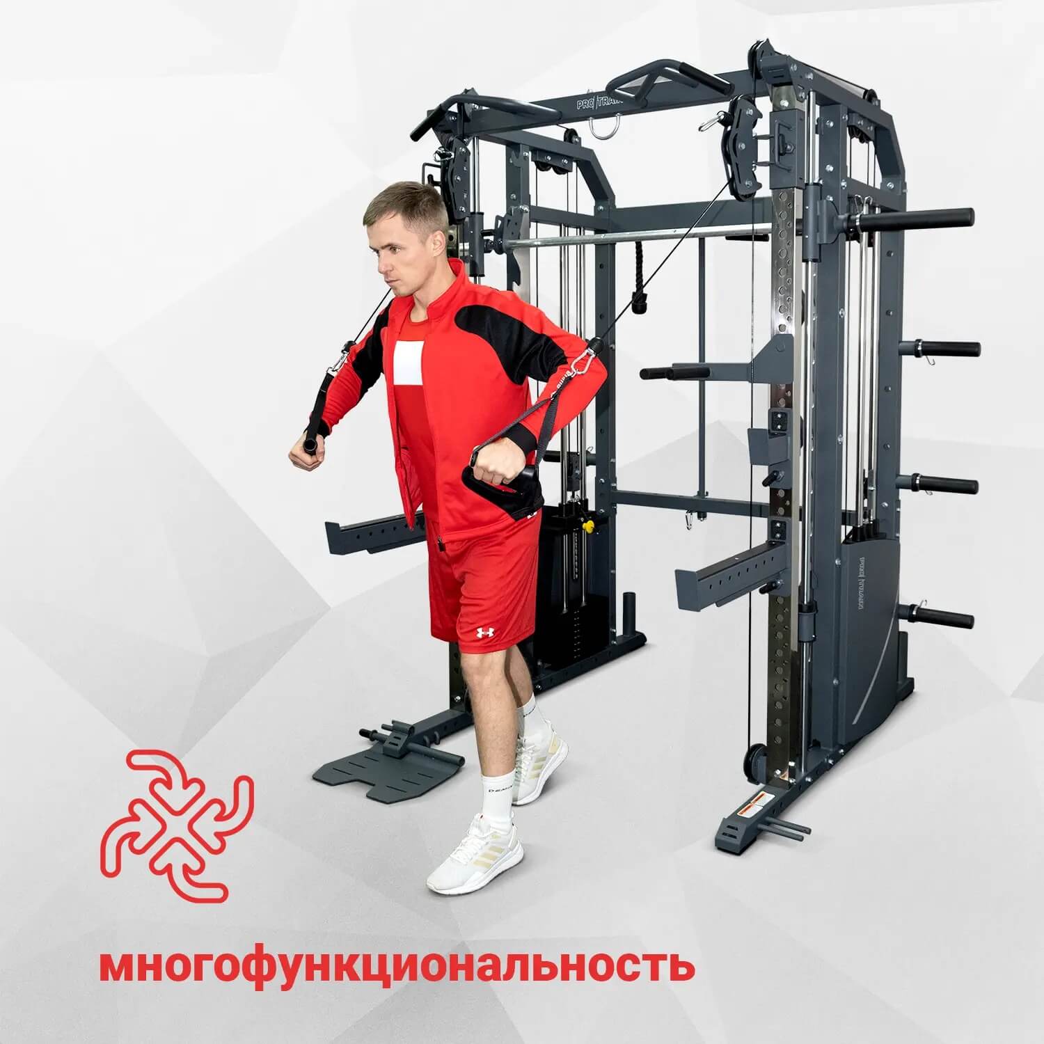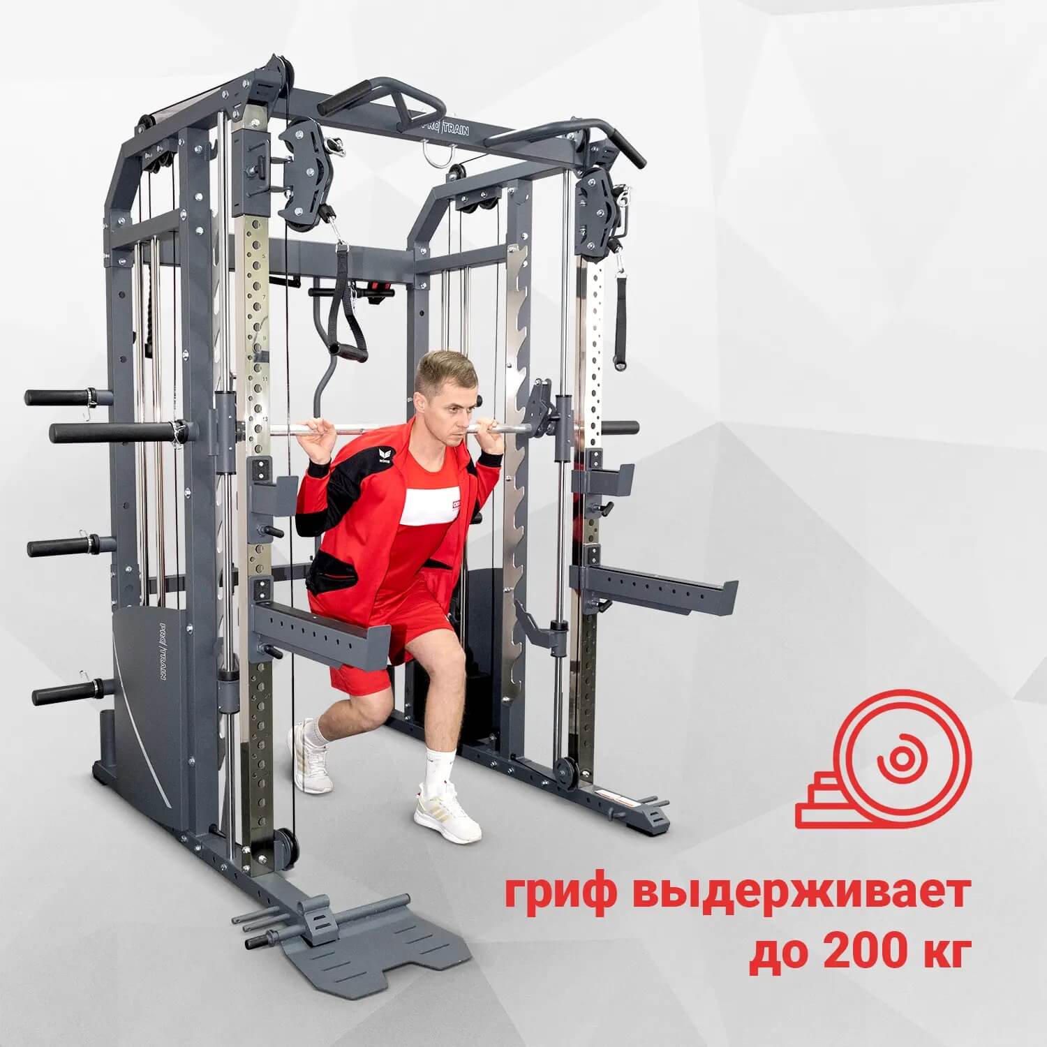 Protrain GT3 — это тренажер 3 в 1. Сочетает в себе машину Смита, силовую раму и функциональный тренажер.