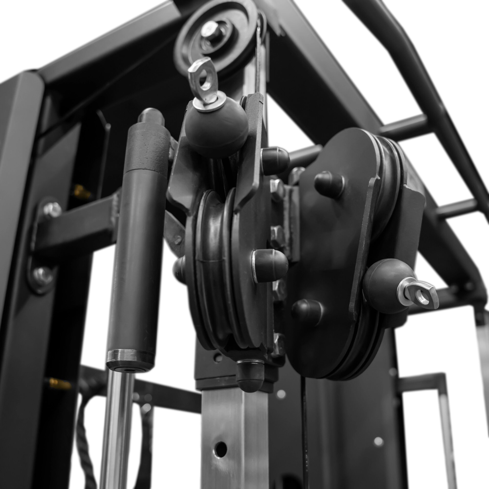 Многофункциональный тренажер имеет квадратный профиль рамы с шириной и высотой в 80 мм, что обеспечивает стабильность и прочность во время тренировок. Ее размеры в рабочем состоянии - 150 см в длину, 200 см в ширину и 220 см в высоту - позволяют эффективно использовать пространство в вашем фитнес-клубе.