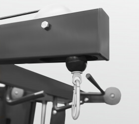 Нагрузка создается несколькими способами: грифом Смит-машины, двумя грузоблоками (передают нагрузку на навесные ручки), собственным весом тела занимающегося (подтягивания). В тросово-блочной системе используется прочный трос толщиной 5 мм. Широкая рамная конструкция способствует дополнительной стабильности, обеспечивает равномерное распределение нагрузки исключая раскачивание и вибрацию. Вращающиеся рукояти обеспечивают свободные и естественные движения. На верхней перекладине предусмотрен турник, рукоятки которого позволяют выполнять подтягивания различным хватом, акцентируя нагрузку на необходимые группы мышц. Конструкция мультистанции включает 2 грузовых стека общим весом 170 кг. Удобный выбор нагрузки осуществляется с помощью штифтов.