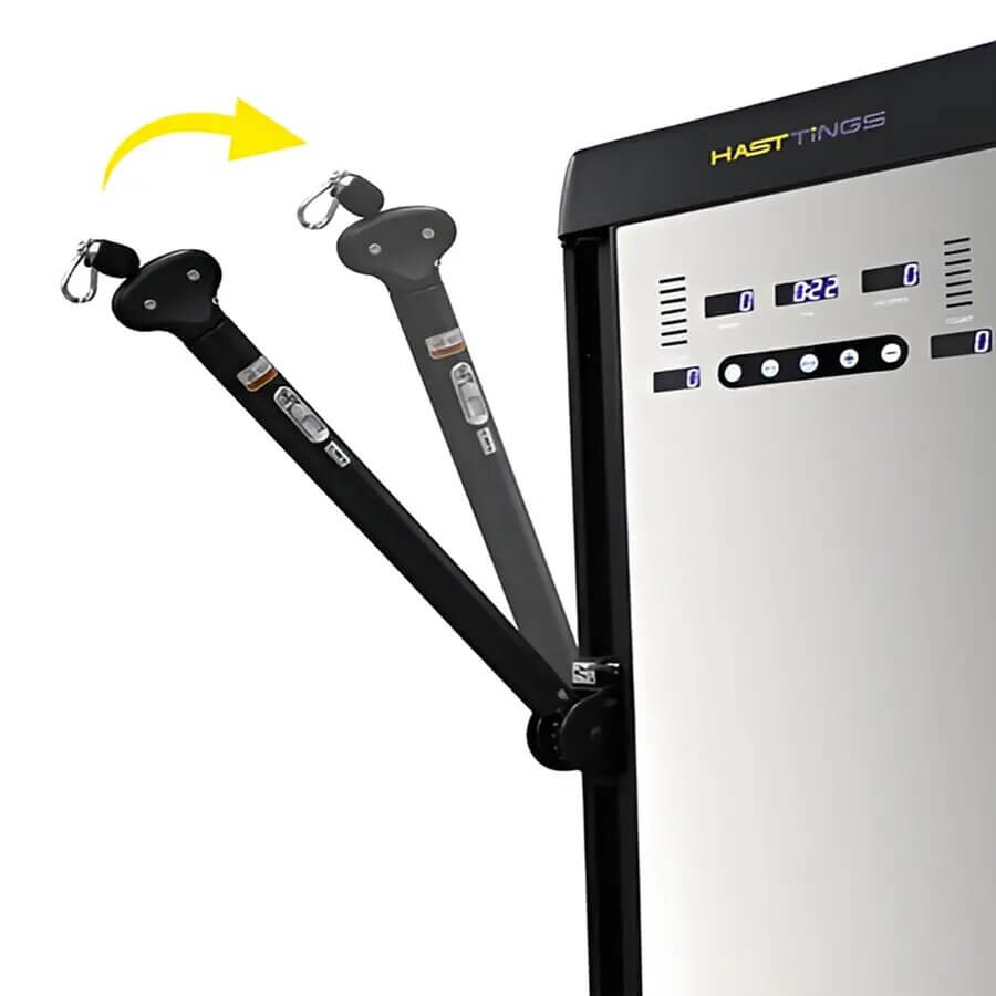 Подвижные поручни в мультистанции HASTTINGS L802 позволяют настроить нагрузку под индивидуальные потребности. Пользователь может изменять угол наклона тренажера и выбирать наиболее удобную позицию для выполнения упражнений.