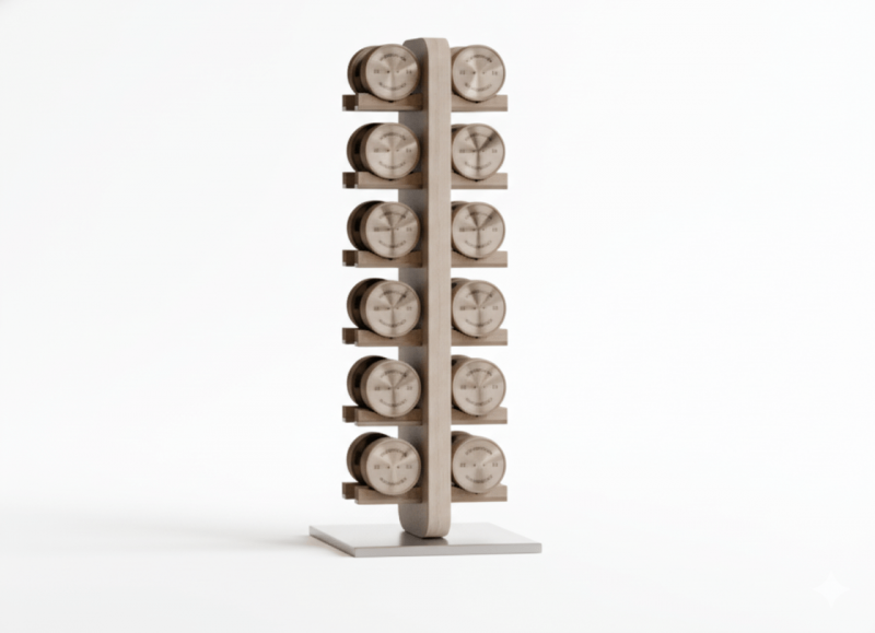 - Прочная вертикальная конструкция, рассчитанная на хранение тяжелых гантелей.