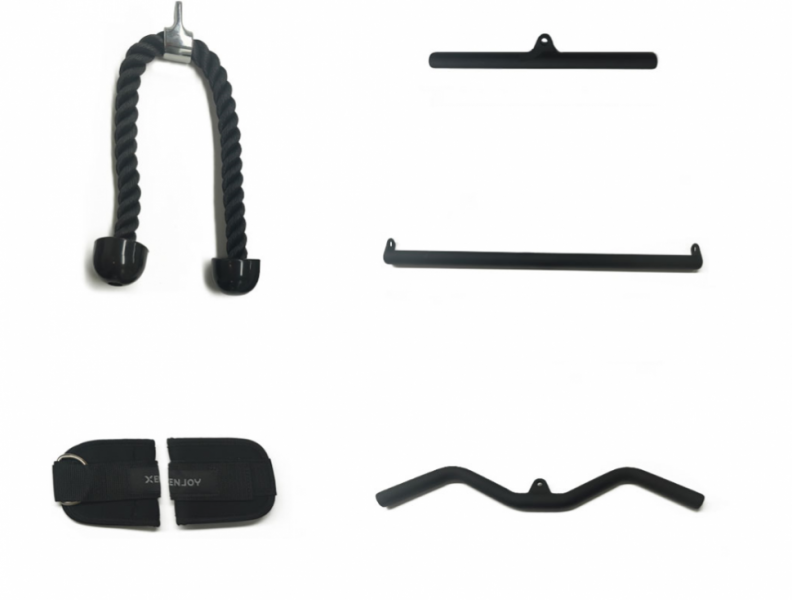 Набор рукояток для тросовых тренажеров Xenjoy — это профессиональное решение для полноценной силовой тренировки всех групп мышц. В комплект входят пять специализированных рукояток: канат для трицепсов и дельт, манжеты для упражнений на ноги, прямой гриф для спины и бицепса, а также V-образный и W-образный грифы для проработки мышц спины и рук под разными углами. С этим набором вы сможете выполнять весь спектр упражнений на одном тренажере, эффективно заменяя целый арсенал отдельного оборудования. Прочная конструкция обеспечивает безопасность во время тренировок, а компактное хранение всех аксессуаров помогает поддерживать порядок в тренировочной зоне. Это идеальный выбор для тех, кто хочет разнообразить свои занятия и добиться максимальных результатов.
