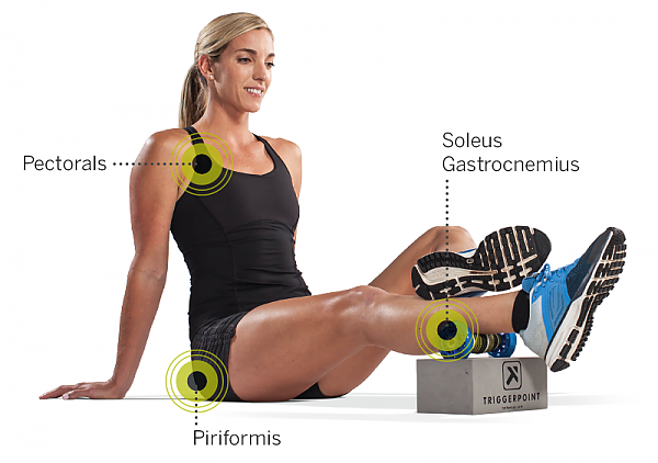 - Можно нацелено проработать 4 зоны: грудные мышцы, грушевидную мышцу, камбаловидные, а также икроножные мышцы.