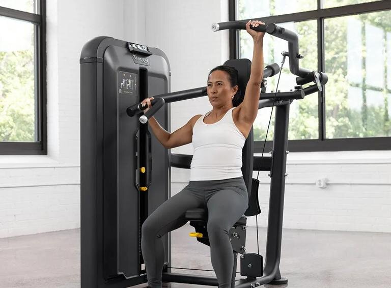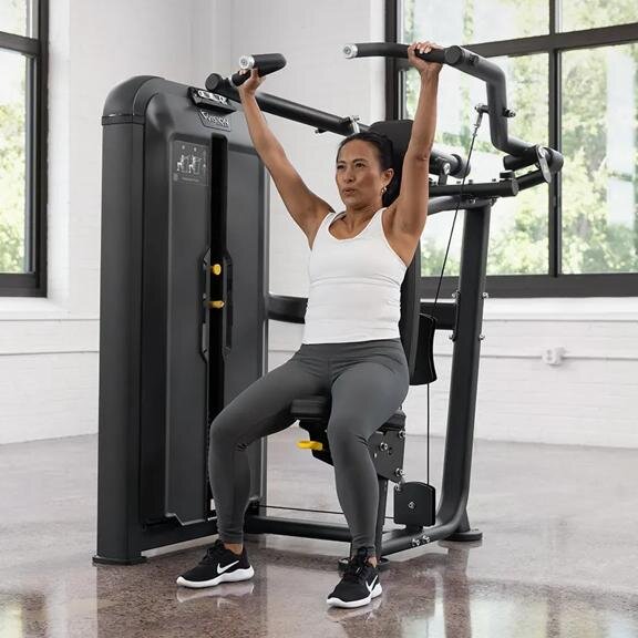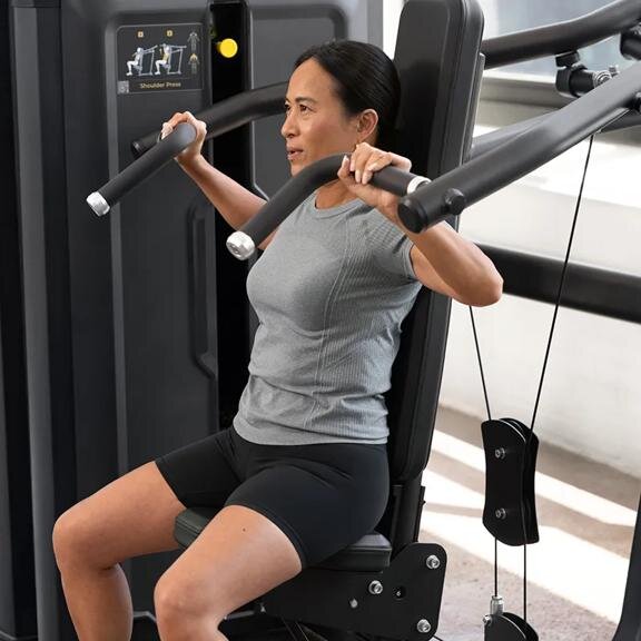 C помощью грузоблочной станции Converging Shoulder Press вы сможете укрепить силу верхней части тела. От точной геометрии позиционирования тела до влагостойких подушек и сварных стальных рам — продумана каждая деталь для производительности, комфорта и долговечности в сложных условиях фитнес-центров с высокой проходимостью.