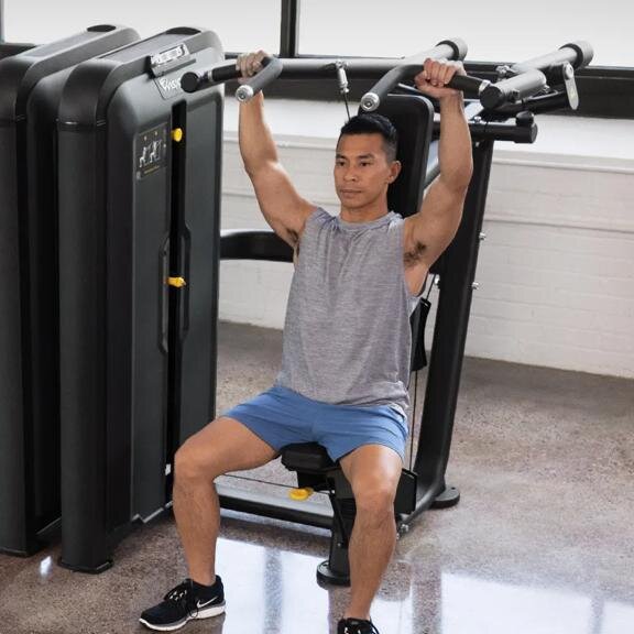 Независимое движение рычагов увеличивает разнообразие тренировок и способствует сбалансированному развитию, в то время как сходящееся движение следует естественной траектории тяги над головой для плавных и комфортных повторений.