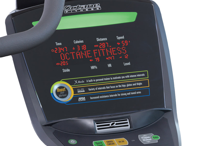 Консоль проста в управлении, независимо от того, выбираете ли вы Quick Start, продвинутую тренировку или же подключаетесь к SmartLink. Вы выбираете уровень на котором хотите провести тренировку. Консоль Q37xi подключается к iPad с тремя опциями – время, чтение, поиск в интернете. Большой экран дисплея одновременно отображает все данные тренировки, но только Octane предлагает технологию SmartLight. SmartLight показывает интенсивность выполнения упражнений, а также сигнализирует о кардио тренировках и подсказывает, когда начнется новый этап тренировки или CROSS CIRCUIT. Процесс обучения становится разумнее.