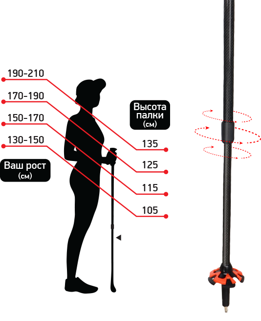 - Шкала для регулировки роста. Благодаря шкале регулировки, вы можете легко настроить подходящую высоту палок, соответствующую вашему росту.