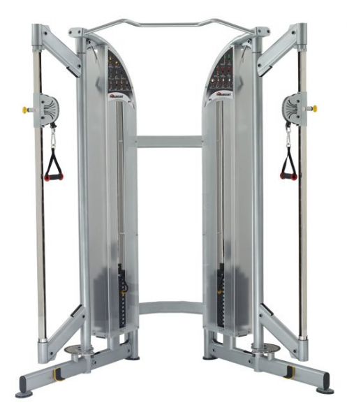 Также тренажер регулируется по вертикали. Троссовые блоки с запатентованой технологией могут вращаться на 330 градусов. Блок фиксируется благодаря 20 выверенным позициям настройки высоты. Благодаря этому возможно качественное выполнение любых эффективных упражнений.