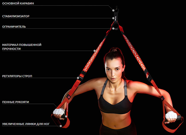 - Регуляторы строп. Для быстрых переходов от одного упражнения к другому
