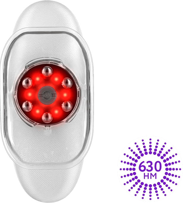 Светотерапия красным светом (630 нм) помогает достичь косметического эффекта омоложения и осветления кожи через стимуляцию синтеза коллагена и митохондрий клеток.