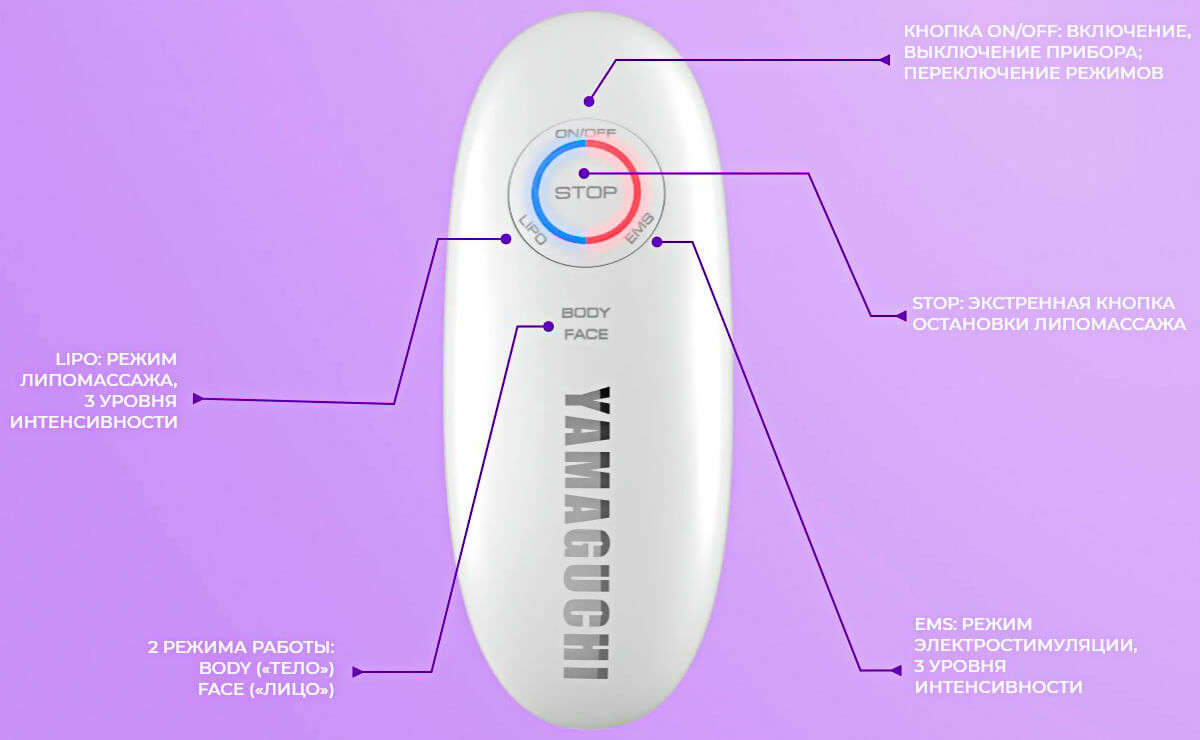 - 3 уровня интенсивности липомассажа и EMS-массажа