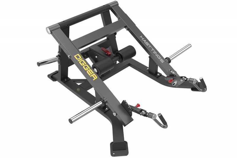 Hasttings Digger HD051-5 – нагружаемый дисками силовой тренажер, предназначенный для выполнения упражнений: становая тяга, выпады, приседания и шраги в одном тренажере.