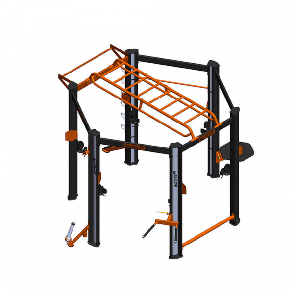 Конструкция в форме гексагона включает в себя 6 широких станций для тренировок, а их расположение по кругу обеспечивает прекрасные условия для групповых занятий. В добавок, каждый угол конструкции оснащен двумя стойками с регулировками. Любую деталь можно расположить как угодно – никаких ограничений! Станции можно привинтить к полу или установить на резиновое покрытие. 6 широких станций и 2 стойки на каждом углу в итоге трансформируются в 18 разных станций для тренировок, и это не считая лестницы. Однако идеальное количество людей, занимающихся одновременно: 6-10 человек.