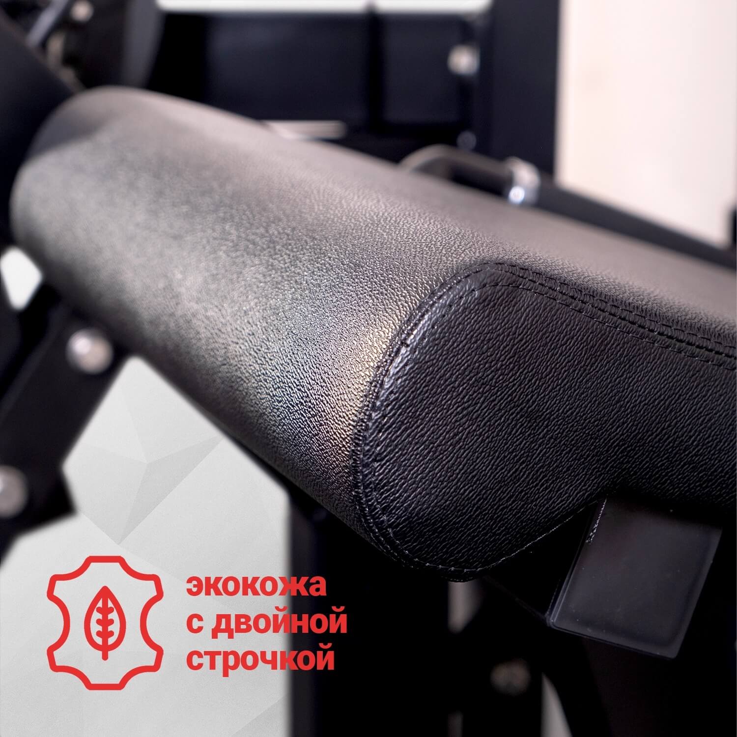 Обивка сиденья, спинки и валики для ног изготовлена из прочной экокожи и прошита двойными швами по всему периметру, что увеличивает срок эксплуатации тренажера.