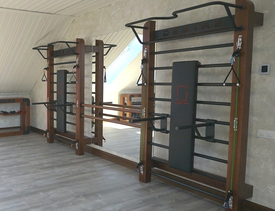 Не просто шведская стенка, а настоящая тренировочная база для многих видов спортивной активности, включая занятия гимнастикой, йогой и балетом. В комплектацию Desire Eco Double Stretch входят две шведские стенки, балетный станок, удобные металлические брусья, компактная скамья и крепления для эспандеров.