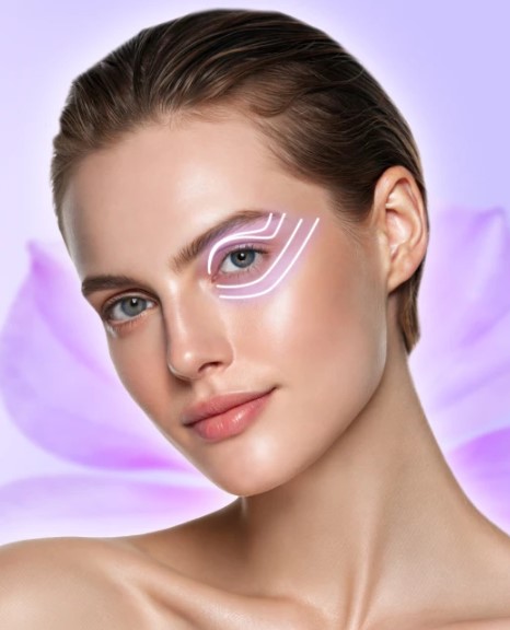 Светодиодная маска интенсивно разглаживает морщинки («гусиные лапки»), подтягивает опустившееся верхнее веко, устраняет тёмныекруги и мешки под глазами.